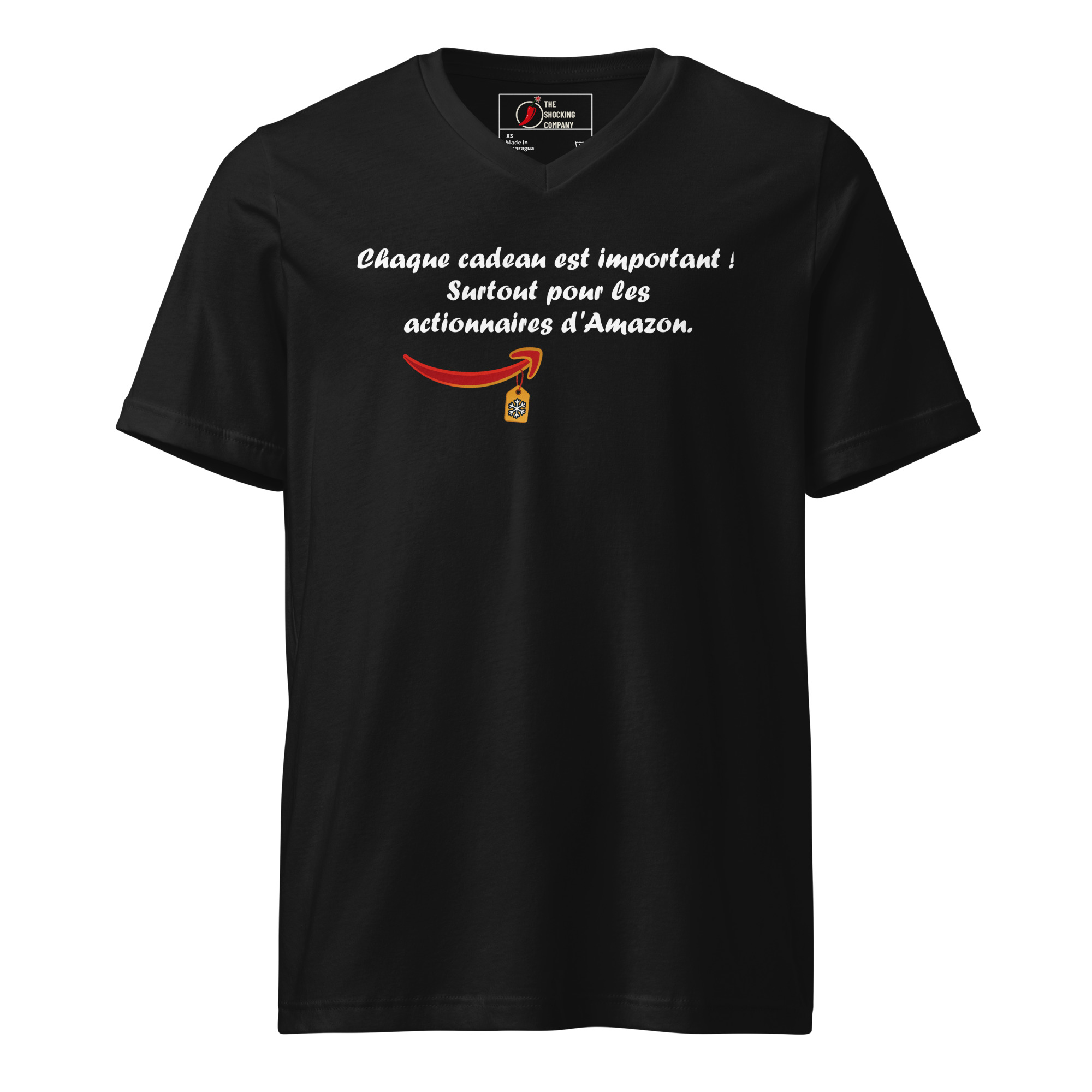 Dénoncez la machine consumériste avec ce T-shirt provocateur qui pointe du doigt l’hypocrisie des fêtes ultra-commerciales et la réussite insolente des géants du e-commerce. Avec son slogan mordant — « Chaque cadeau est important ! Surtout pour les actionnaires d’Amazon ! » — ce modèle expose avec humour noir les coulisses d’un système où la magie de Noël, de Pâques ou de n’importe quelle célébration passe bien après les profits stratosphériques engrangés par une poignée d’investisseurs.